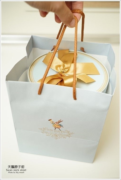 ▼彌月禮盒出現啦!不僅有圓筒外盒搭配金色蝴蝶裝的裝飾,還有特製的提袋,看起來質感大大升級不少!