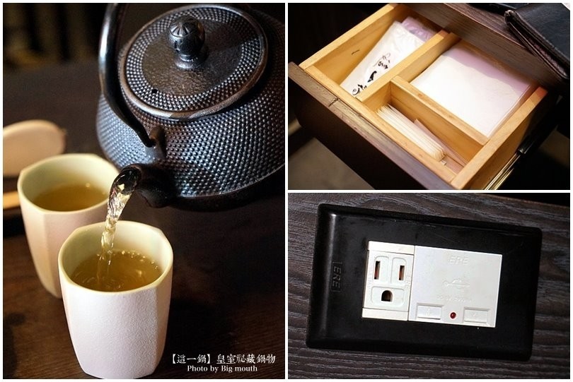▼我們也是坐在一樓的包廂區,最佛心的是這裡沒有低消,所以用餐起來輕鬆又自在!餐巾紙、濕紙巾、牙線都放在桌邊的抽屜裡,下方還有插座,真是太貼心啦!一開始會先送上阿里山的里佳甘露,先泡個三分鐘就可以享用囉!