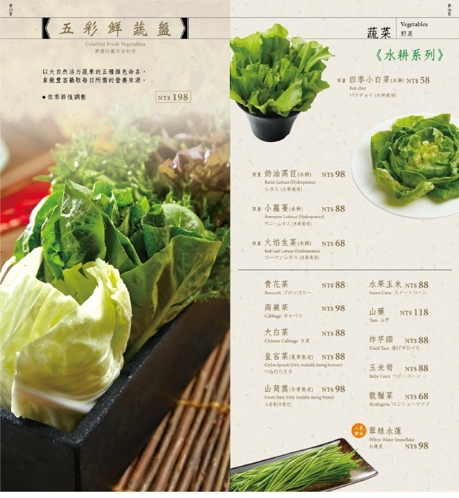 ▼五彩鮮蔬盤,更是採用當季新鮮蔬菜來調配,所以每次吃到的菜色不見得一樣唷!我們這次享用到的是山茼蒿、紅象生菜、火焰生菜、小蘿蔓、高麗菜等五種,除了高麗菜外,其他都跟外頭常見的蔬菜很不一樣呢!其中火焰生菜跟小蘿蔓還是水耕蔬菜哦!大口吃肉的同時也可以來點鮮蔬解解膩也不錯!