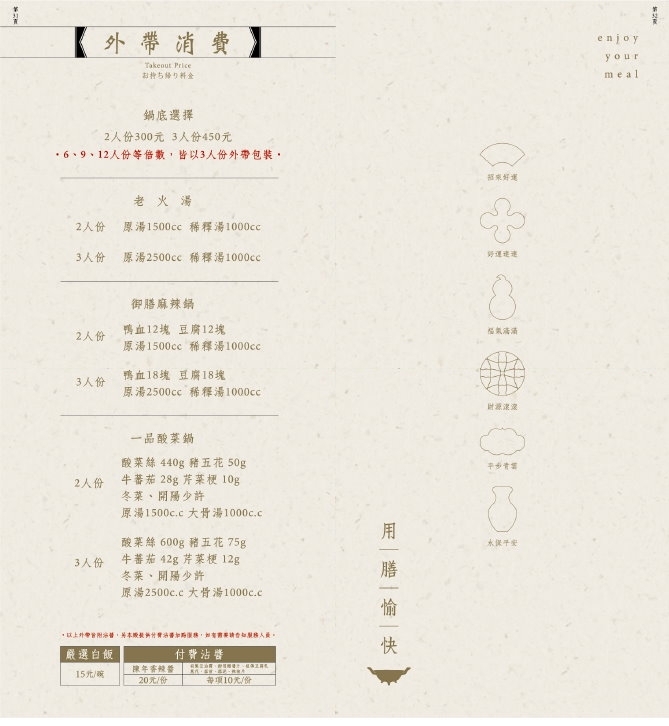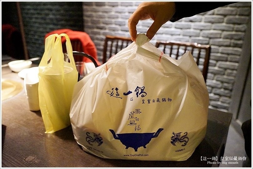 ▼我們一個不小心點太多了,所以打包回家繼續享用!店家也會非常貼心的將湯頭與鍋底都加滿,回家又是一頓啦XD 回家除了再吃鍋的方式外,其實鍋底還能變化很多料理哦,可以到這一鍋官網或是在youtube搜尋「朕的御膳廚房」,就能看到食譜囉~ 老火湯可以拿來煮福氣粥、麻辣鍋底則能煮出麻辣牛肉麵唷!