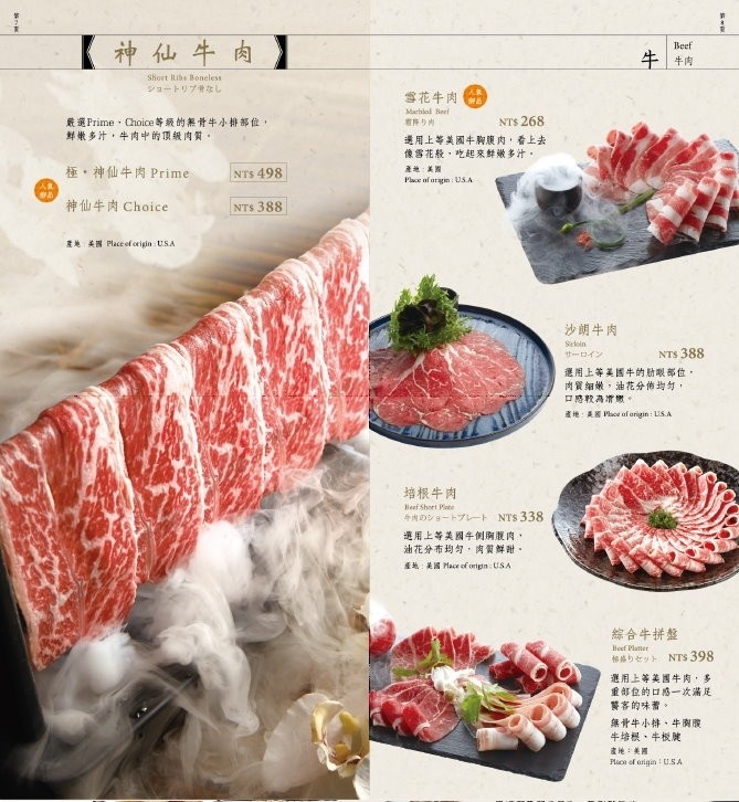 ▼神仙牛肉Choice,油花均勻的無骨牛小排一字排開,搭配夢幻的裊裊白煙,真的有種置身仙境的錯覺!另外還有進階版的極‧神仙牛肉,是Prime級別的肉品,加110元就再升個級別囉!