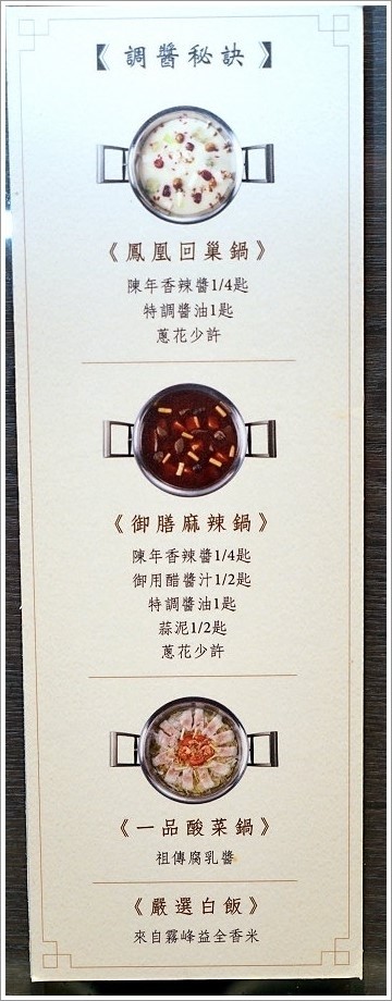 ▼我們點的是鴛鴦鍋,也就是御膳麻辣鍋搭配老火湯,一次就能品嚐到兩種不同風味!另外也有一品酸菜鍋可以做選擇哦!吃完打包回家的鍋底,還能煮個酸菜白肉麵來吃吃呢~