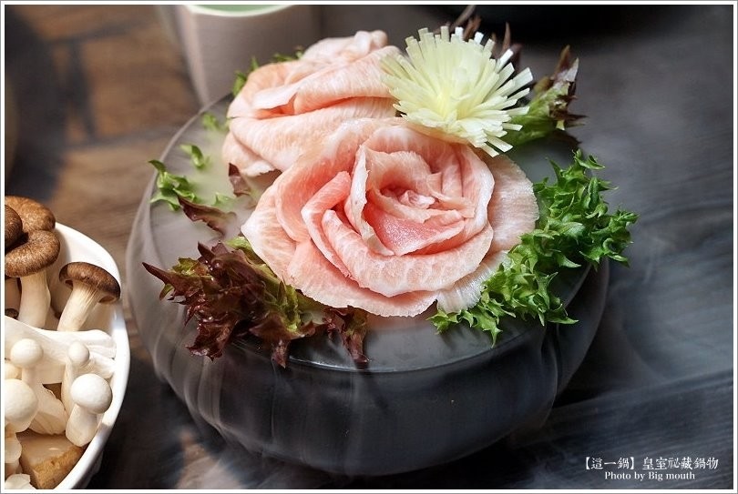 ▼這麼美的松阪豬我們一開始還捨不得下鍋,服務人員告知只要直接整朵花直接下鍋等到散開就可以享用啦!