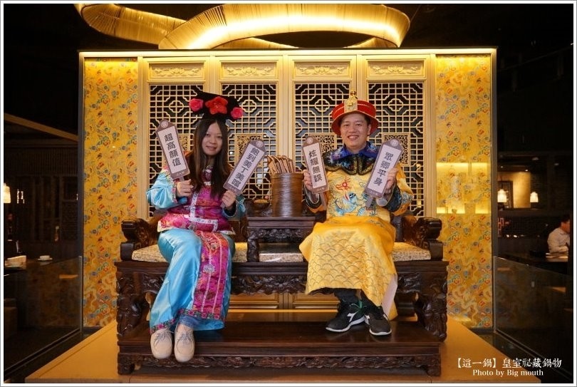 ▼吃飽喝足後,我們就來換裝拍照啦!我們扮演的是皇上與格格,一旁還有提供超多搞笑的牌子可以一起入鏡,有趣又好玩!