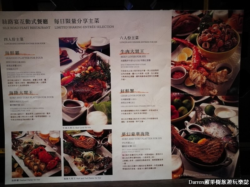 絲路宴互動式餐廳用餐方式,選擇個人位上主餐或者多人分享主菜分食,然後自助吧Buffet無限供應