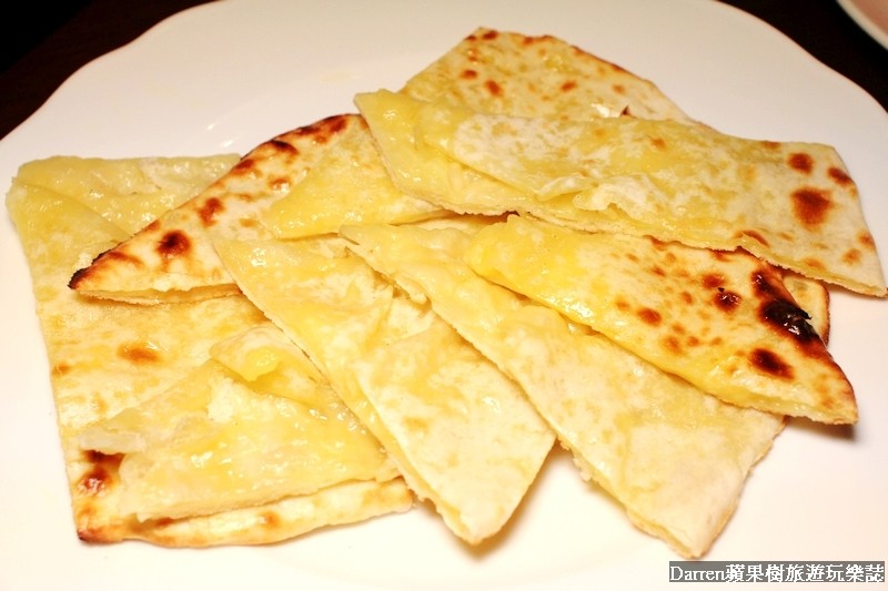 ▲傳統印度烤餅可以搭配不同的咖哩或佐料呈現不同風味,而我喜歡直接吃起司口感甜甜鹹鹹很好吃