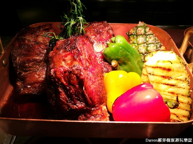 這個區塊的重點畫個星號,肋眼牛肉無限供應肉質細緻美味,北京烤鴨夾餅油脂香氣豐富口感不錯