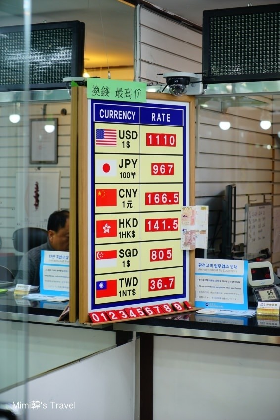 來首爾東大門需要換錢的話,推薦可以來這條東大門換錢一條街,短短百來公尺大概就有7~8家換錢所,可以拿美金、台幣來換韓元,隨便一家匯率都比在台灣銀行要好得多,以同樣換$10,000元台幣來說,大概可以差到約30,000韓元,所以Mimi是建議在台灣不用換太多,夠你到當地再換錢就好了。