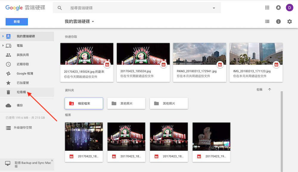 第一步 – 開啟 Google Drive ,點選「垃圾桶」