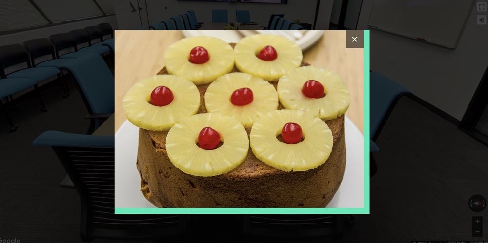 距離 Google I/O 還有兩個月的時間,而 Google I/O 這次還有個挺有趣的彩蛋就是藏在 Google Maps 之中,透過滑鼠的前後左右調整,還能找到解開會議室的城市名稱密碼(大家可以先自己試試看,文末會附),沒想到解開鎖後踏進會議室,竟然在桌上看見一塊鳳梨派蛋糕 (Pineapple Cake) 也讓大家猜測是否也暗示就是這次 P 所代表的甜點。