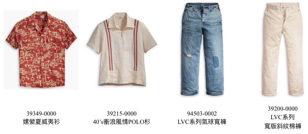 本季男裝上身重點單品包括40年代嫘縈夏威夷衫、設計中融入LEVI’S 於40及50年代所創造出的時尚印花圖騰襯衫;下身裝扮著眼於20年代風行、具有陽光洗鍊感的氣球寬褲(balloon pant),以及30年代衝浪玩家喜愛的經典寬管斜紋棉褲,並以衝浪標誌及別具巧思的前口袋收邊設計加以點綴。