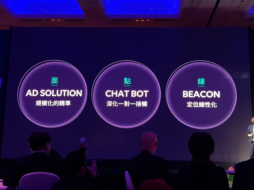 將打造立體化的行銷商圈,要讓超過 160 個官方帳號 / 超過 120 萬 LINE@ 帳號,做更深化的一點一接觸,甚至還有 CHAT BOT 聊天機器人的專業諮詢服務,與提供 LINE BEACON 給商家做為特殊場域活動行銷方式。