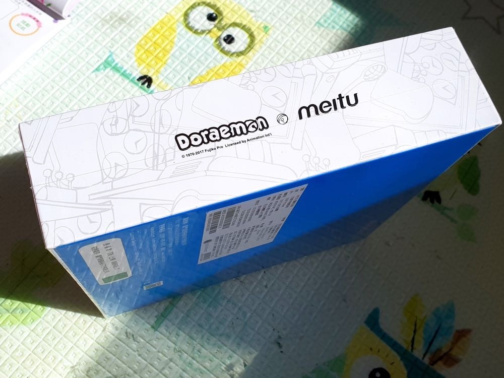 哆啦 A 夢限定版的外盒上有著滿滿的哆啦 A 夢風格。