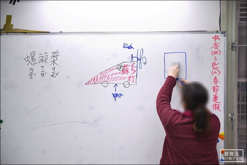 所有小朋友都期待的螺旋槳汽車來了,平常玩的小汽車都是買現成的,可以自己做汽車,還可以比賽看誰跑得快,這個單元每個孩子都超認真學習,在組裝汽車前,老師會先解說螺旋槳與空氣是怎麼形成推力,類似的設計運用在那些地方