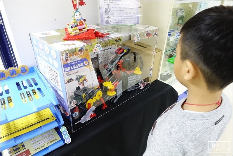 ▼ 除了科學實驗課程外,福寶哥對於日本休曼機器人的課程也頗有興趣,讓自己組的積木,藉由程式控制讓它動起來,是不是超級酷的,每一年還會舉辦日本修曼機器人體驗會,展示這一年上課學生中的優秀作品,還有機會出國到日本去比世界大賽喔