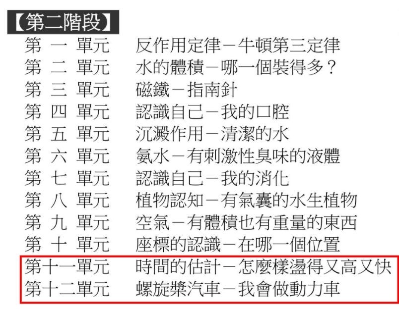 ▍介紹的上課課程為低年級科學實驗課第二階段單元十一, 單元十二
