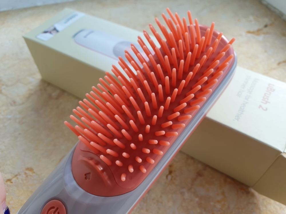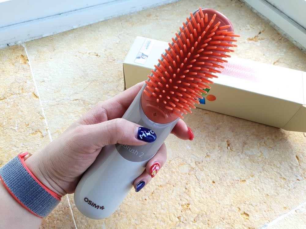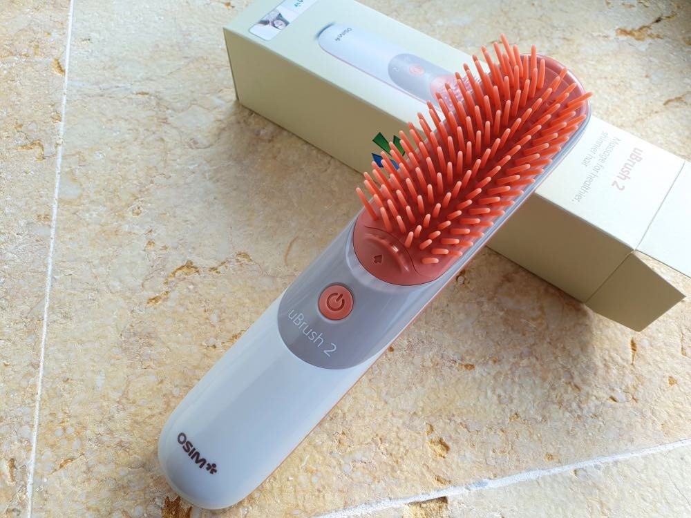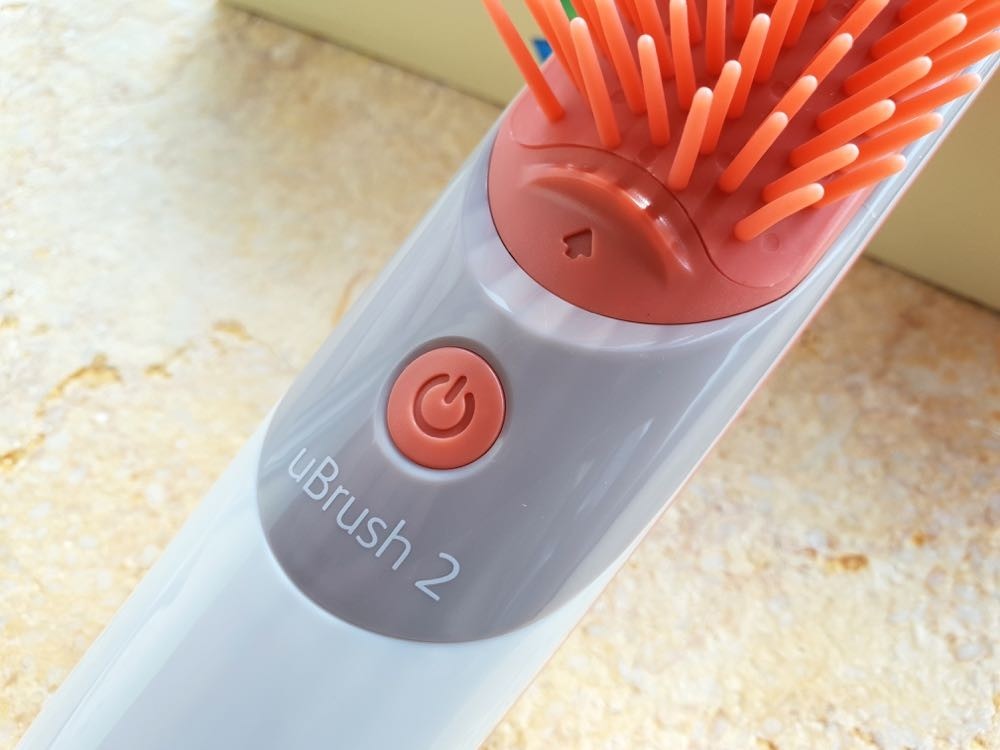 OSIM uBrush 2 摩髮梳在外型上就是一般的梳子,但只要透過把手下的開關切換就能兩階段的震動強度,讓我們在邊梳頭髮的時候還能用 特殊設計的刷毛來順便按摩頭皮,促進頭部血液循環和梳開容易打結的頭髮,還能刺激頭皮毛囊讓秀髮更加動人。