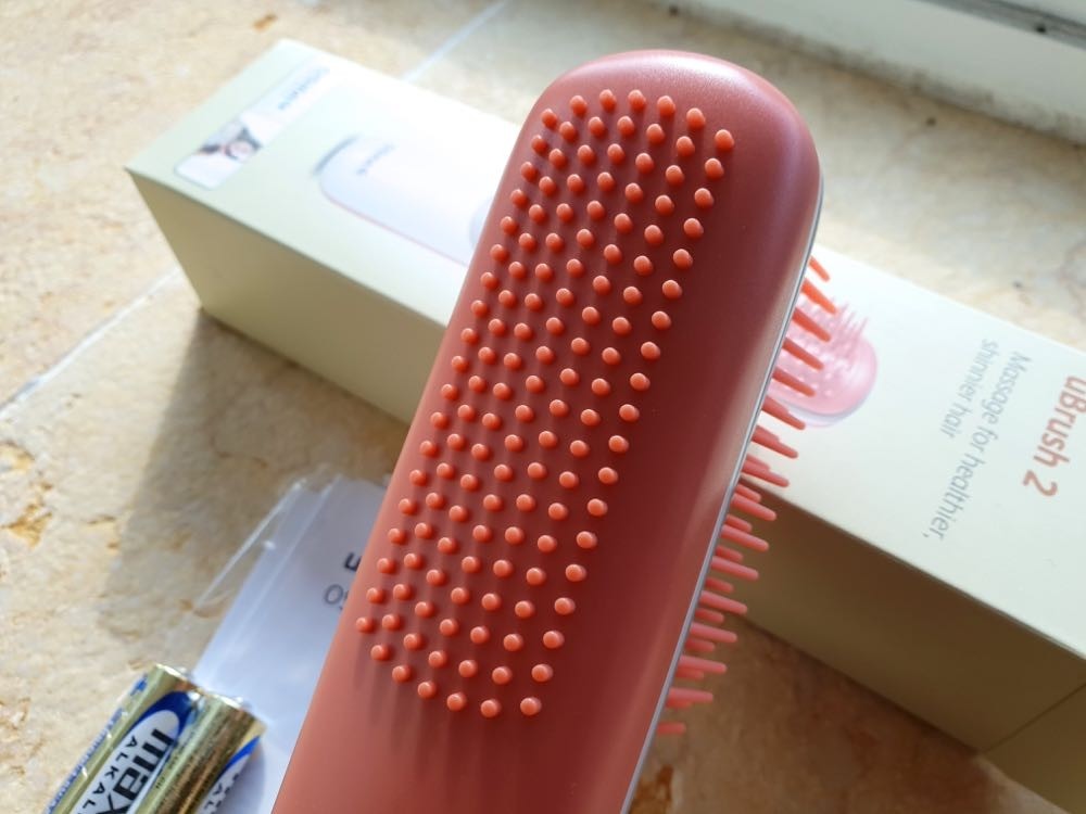 不過另一個也算是相當貼心的設計就是原來在梳子的背面還有按摩觸點,原來當我們肩頸痠痛時還能用這面來幫忙按摩肩頸,再配上 uBrush 2 本身輕巧好握的沒負擔 (和按起來真的超~~~~舒服的感覺),真的可以堪稱是目前最~隨身的按摩器具了!