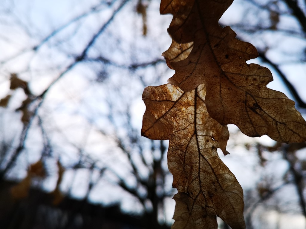 路邊隨手拍的枯葉,逆光拍攝可以把葉脈拍得很好看。