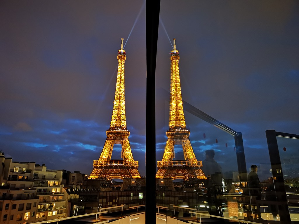 巴黎君悅飯店樓頂,但要隔著窗戶拍,並不好拍攝。