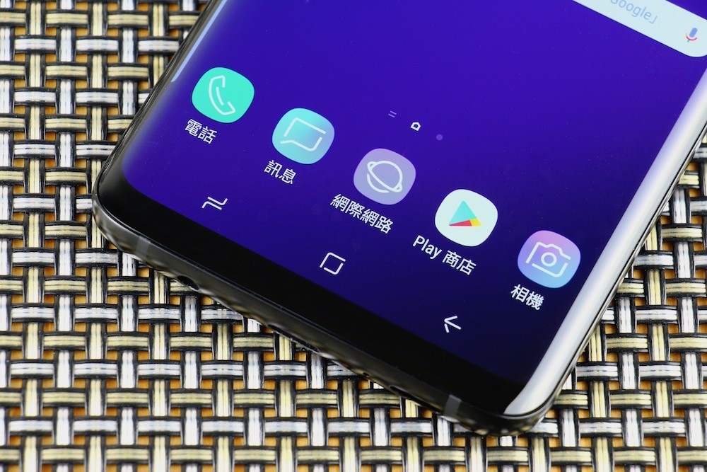Galaxy S9+ 延續了 S8 系列的可自行更換位置的虛擬導覽列設計,螢幕下方並沒有配置任何實體按鍵,Home 鍵同樣支援震動回饋。