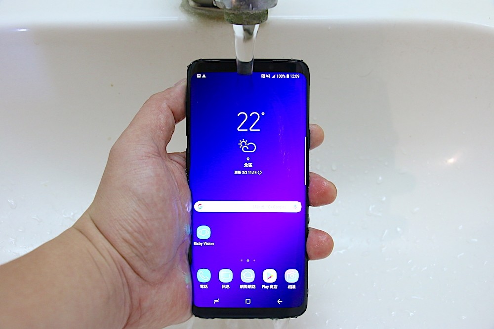 Galaxy S9+ 具備 IP68 防塵防水,根據官方數據表示,不僅能在雨中拍照、傳送訊息,就算不小心掉入水中,也可以在 1.5 米的水深浸泡長達 30 分鐘,再也不用擔心不小心翻倒的飲料或是不慎掉入水池,會讓手機進水損壞。不過,必須注意的是,IP68 防塵防水僅能抵擋一般清水侵入手機,建議避免手機接觸溫泉水、海水、熱水以及清潔劑,以免防水膠條劣化導致防水失效。