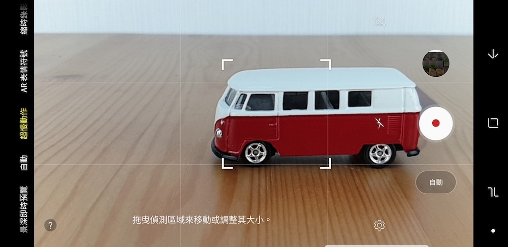 為了提高超慢動作攝影的成功率,Galaxy S9+ 還備有可以任意移動位置與偵測範圍的「陷阱快門」,只要將它放置在物體可能會移動的路徑上,待偵測方框由準備中的白色轉為偵測中的黃色後,就能開始捕捉進入偵測範圍的高速移動物體,精準的拍下物體移動的瞬間畫面。