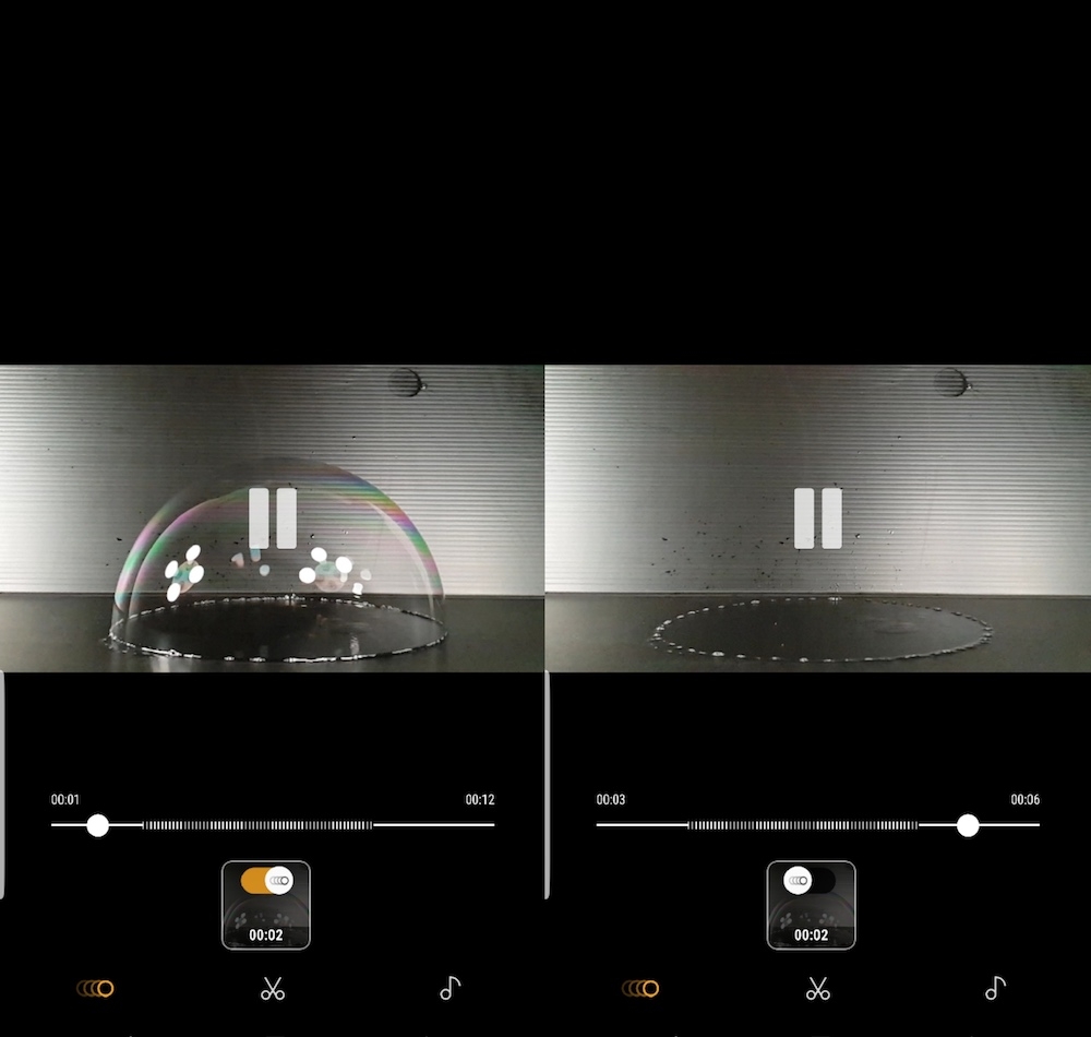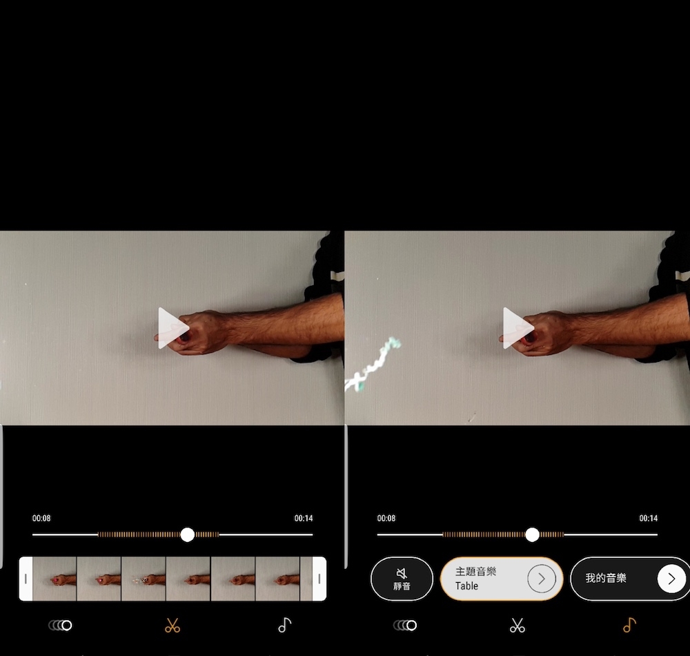 如上述所說,Galaxy S9+ 超慢動作攝影的剪輯功能,不僅能決定是否要以超慢動作或正常速度來播放,還可以針對 960fps 高速攝影的部分進行影格增減,以及為整支影片放上適當或有趣的配樂,就算沒有將整個影片檔案上傳到電腦,也可以隨時隨地透過手機進行剪輯。