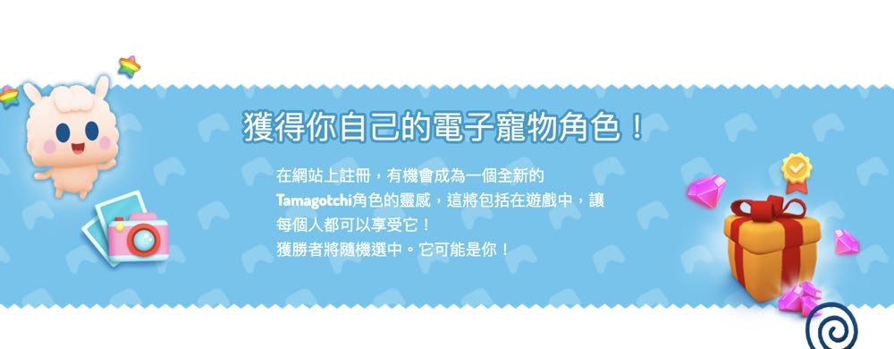官網現在還舉辦一個能夠讓玩家獲得自己電子寵物角色的活動,雖然細節並不清楚,但只要輸入出生日期、e mail、國籍和玩遊戲的平台就能參加抽獎了唷!