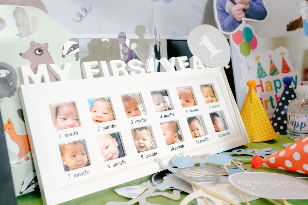 當天放了我們每個月都會幫他拍一張歲數貼紙在身上的照片,放在週歲照片卡上。