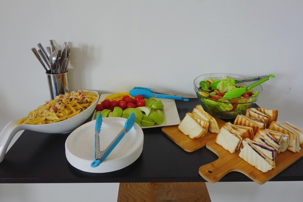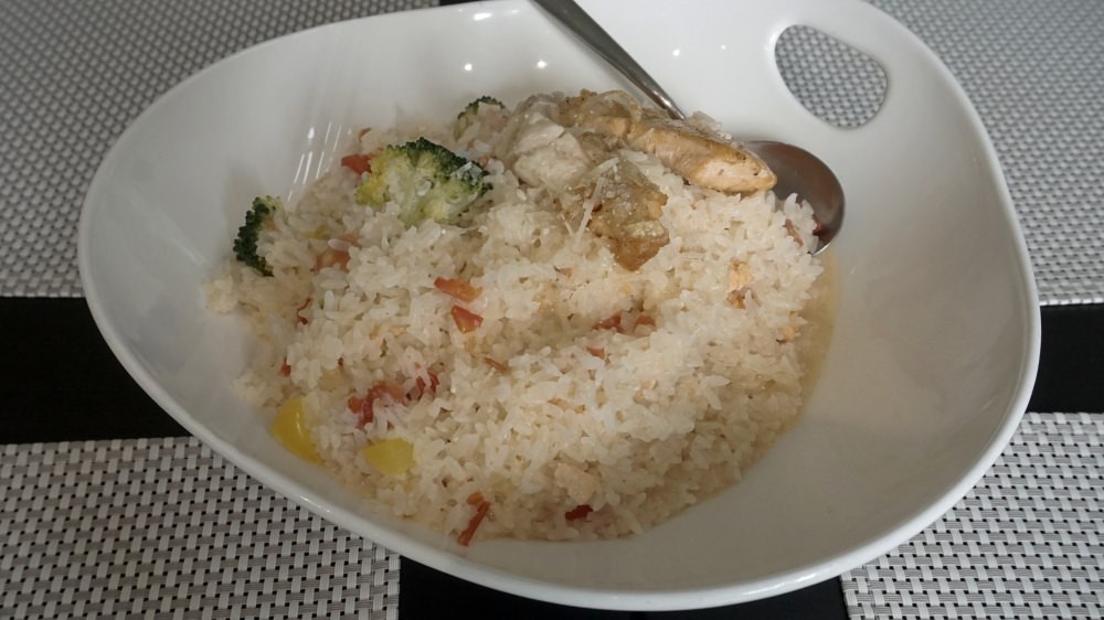 活動開始的時候我就請大家先用餐,因為我預定的時間是中午12點,餐點口味偏清淡,大家吃起來也都還算OK,他們家的薯條好像是用氣炸鍋之類的處理,比較不油膩,整體吃起來應該還算OK!我選擇了奶油培根筆管麵、鮮蝦菇菇燉飯、番茄鮭魚燉飯三種。第一次奶油培根筆管麵吃完,店家還可以讓我們換成奶油培根飯,覺得很不錯。
