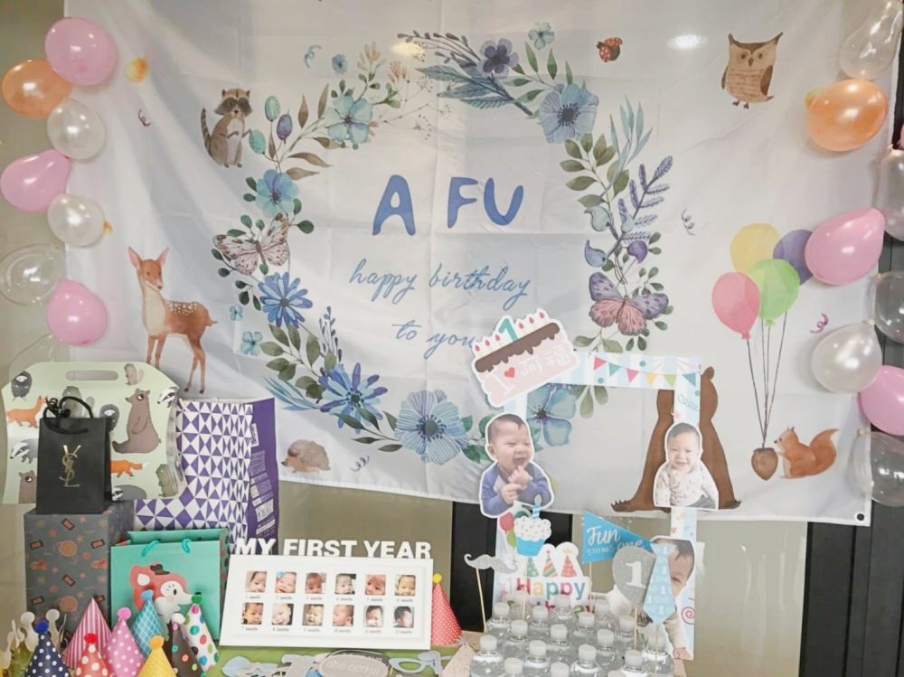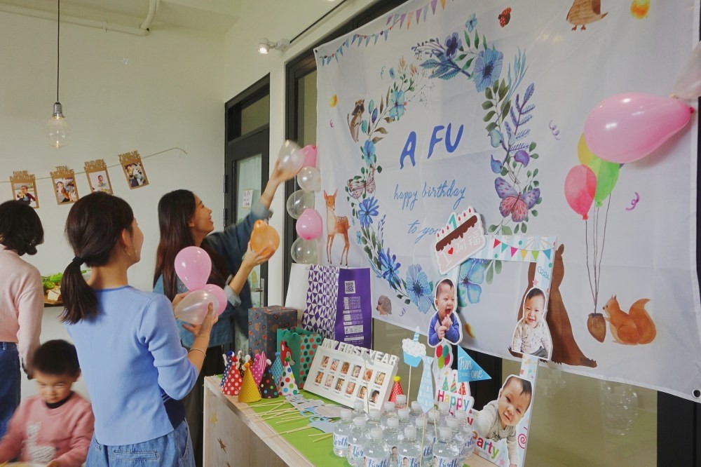原本阿福的生日我預計簡單地在家裡辦慶生、抓周就好,所以什麼都沒準備(抓頭)但一直到了生日的前兩三週,我才突然想到當天一定會很累,若還要處理食物殘渣與回收各種物品,我一定會累到發脾氣。既然先想到了這些問題,就決定快點找外面的場地。