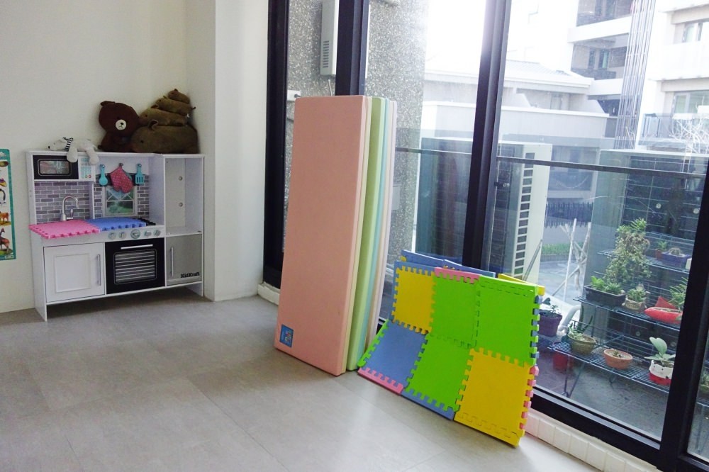 這個是後面的遊戲區,一樣可以放上兩張地墊、玩具也都有提供。我們抓週在這裡進行,派對結束後孩子也在這裡玩耍。