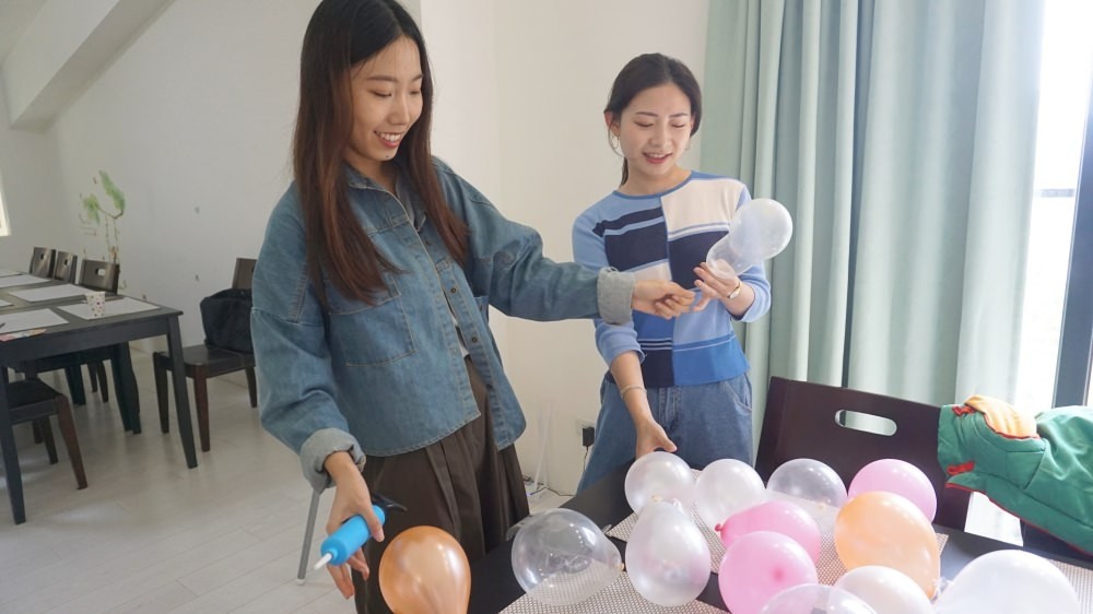 還有兩位朋友一來也是問有什麼需要幫忙的?就開始幫我打氣、黏氣球!因為我本身美感不好,有她們在我很安心(笑)
