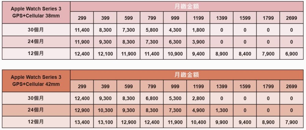 Apple Watch Series 3 (GPS + Cellular) 資費與優惠組合