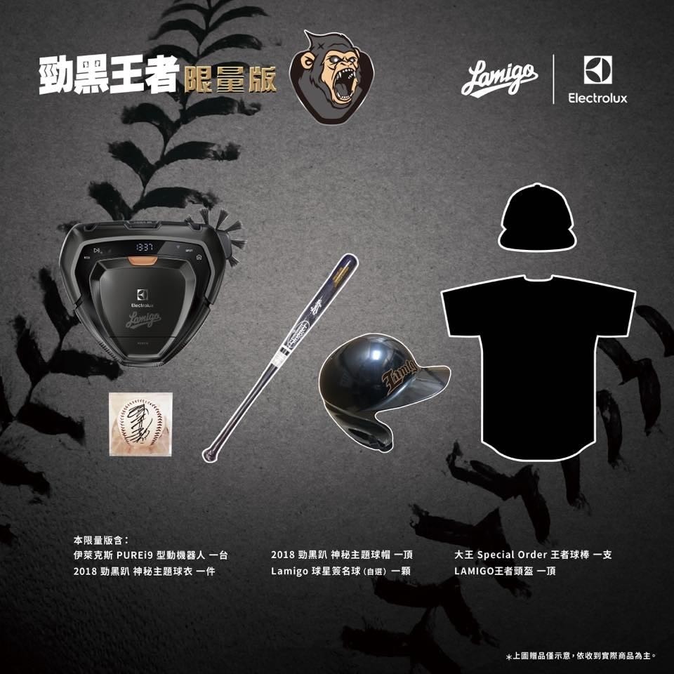 瑞典精品家電大廠伊萊克斯(Electrolux)力挺台灣棒球今年與 Lamingo 桃猿隊合作邁入第 6 年,首度推出聯名限量商品「PUREi9 勁黑王者限量版」,現在正於 momo 購物網獨家開放預購,並為回饋球迷還推出購買「PUREi9 勁黑王者限量版」就送超豪華 Lamigo 五大周邊好禮(包含 Lamigo 2018 勁黑趴主題球衣乙件、球帽乙頂、球星簽名球乙顆 (可指定球星)、大王 Special Order 球棒乙支和王者打擊頭盔乙頂,總價將近萬元,是球迷絕對不能錯過的絕佳珍藏商品!