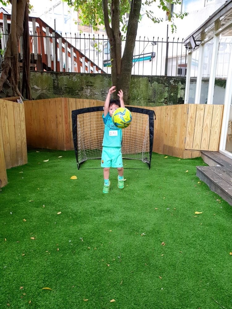 雖然說只有短短的一個小時,但這小時中卻讓點兒先是來回跑暖身熟悉老師、跳跳跳練習腿部肌肉、投球滾球練習眼手協調性,就連本來只會雙手把球丟下去、撿起來、再丟的點兒,也開始會試著把手擺成上下方式、拍拍看,甚至投籃也比往上拋再多了點向前的拋物弧線(XDDD 媽媽真的好容易滿足)