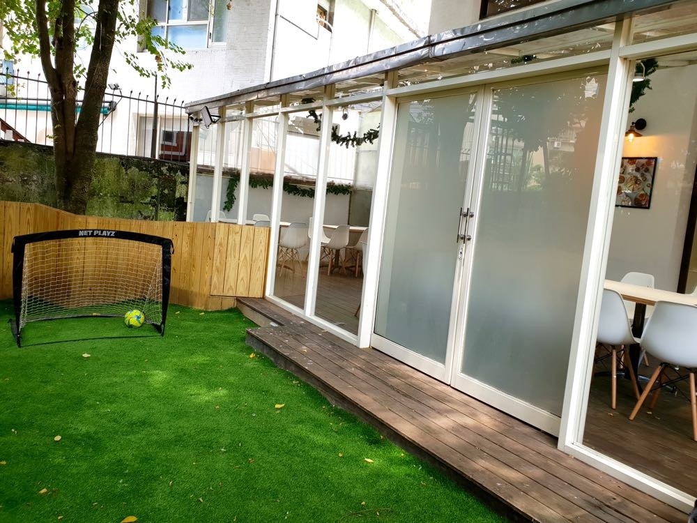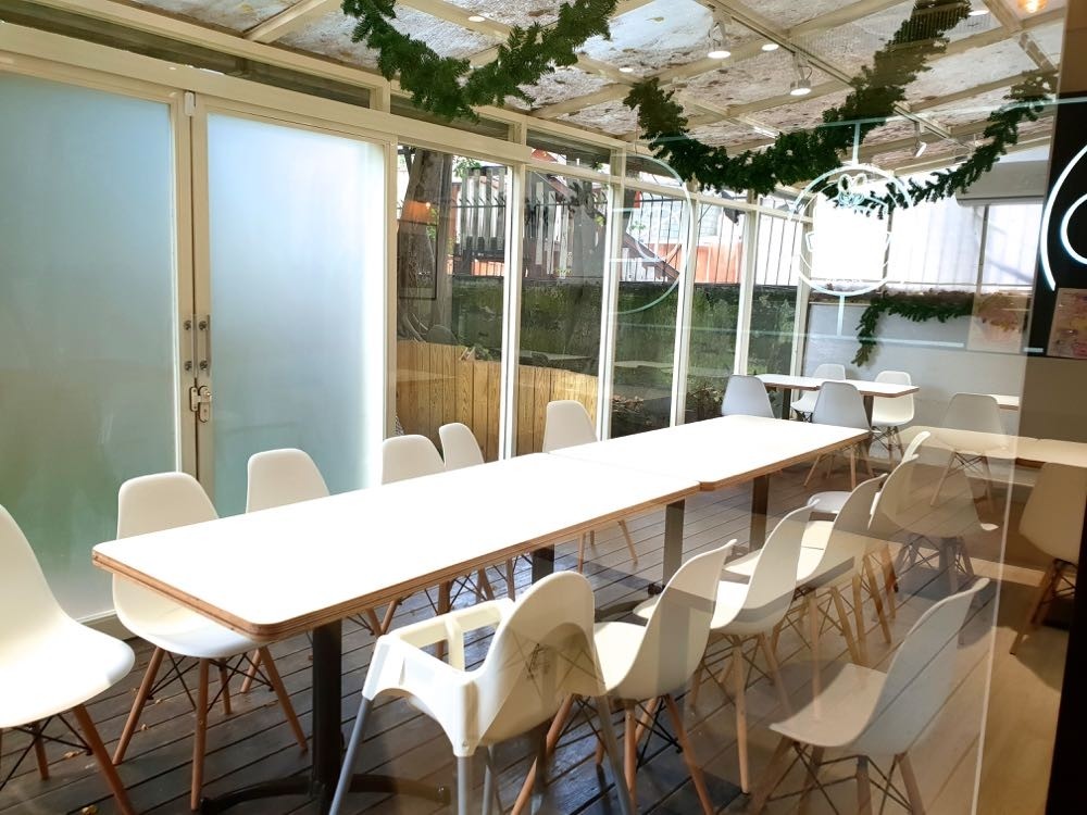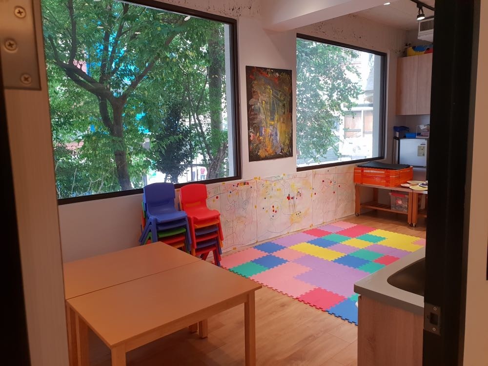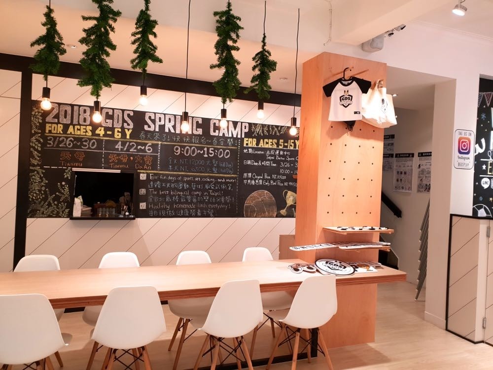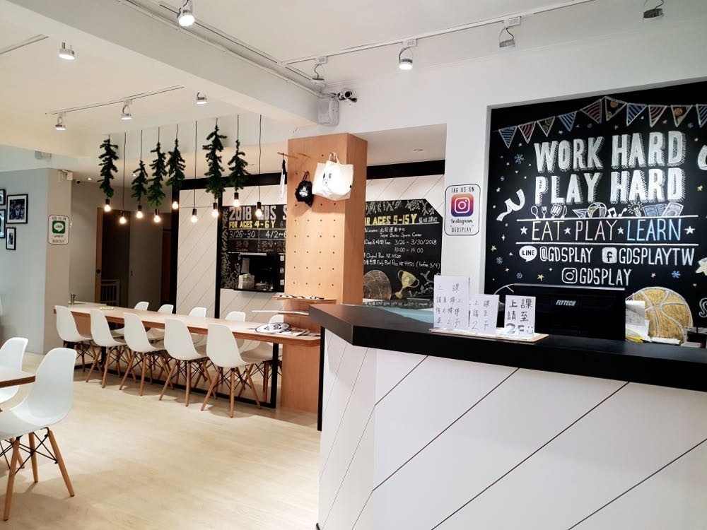 隱身在台北市大安區巷弄中的 GDS 距離捷運站還有一段距離、停車位也不多,但也正因為如此 GDS 在樂利街中一樓擁有一個精緻小庭院、室內球池、光線明亮的親子餐廳座位區,以及二樓的兩間小教室和戶外小巧遊戲區的寬敞空間。