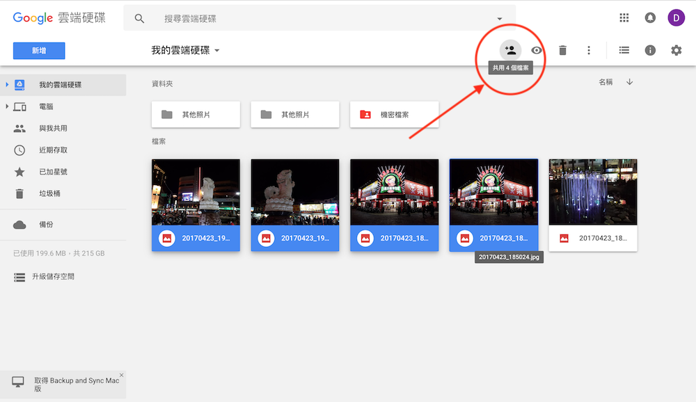 第一步 – 開啟 Google Drive,圈選欲分享檔案