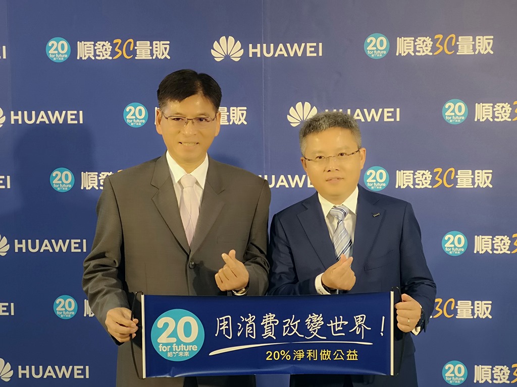 順發 3C 一直以來都默默在台灣進行公益,讓消費者消費之餘也能順手作公益,華為也非常認同順發3C的理念,以順發3C的消費做公益機制,讓消費者不用多花錢就能做公益,每賺 100 元就捐出 20 元,幫助國內弱勢學童就學所需,推動用消費改變世界。