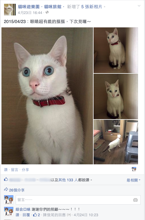 推薦給有需要貓咪住宿的朋友~陳俊尾先生說,真的是很不錯的地方唷!XD