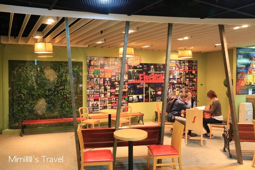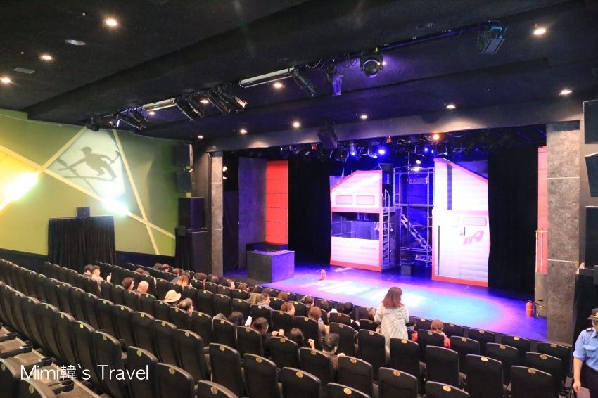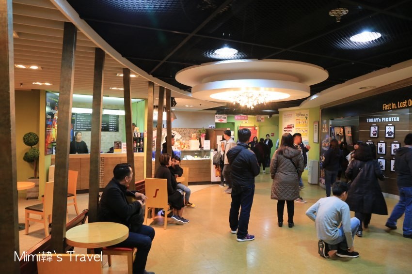 明寶藝術廳一樓是有咖啡店,旁邊有7-11和GS25便利商店,而上面除了我們這趟要看的FIRE MAN救火秀,還有功夫世家Jump秀等幾個舞台劇的表演場地。建議大家還是在台灣就先買好票,會比現場購票更方便且便宜一些唷 ?