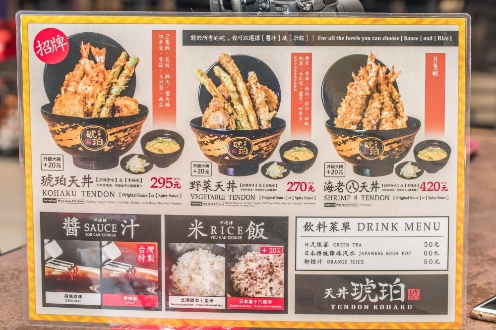接下來,熊也跟大家分享天丼琥珀的菜單,如果到了現場要點菜就可以直接決定