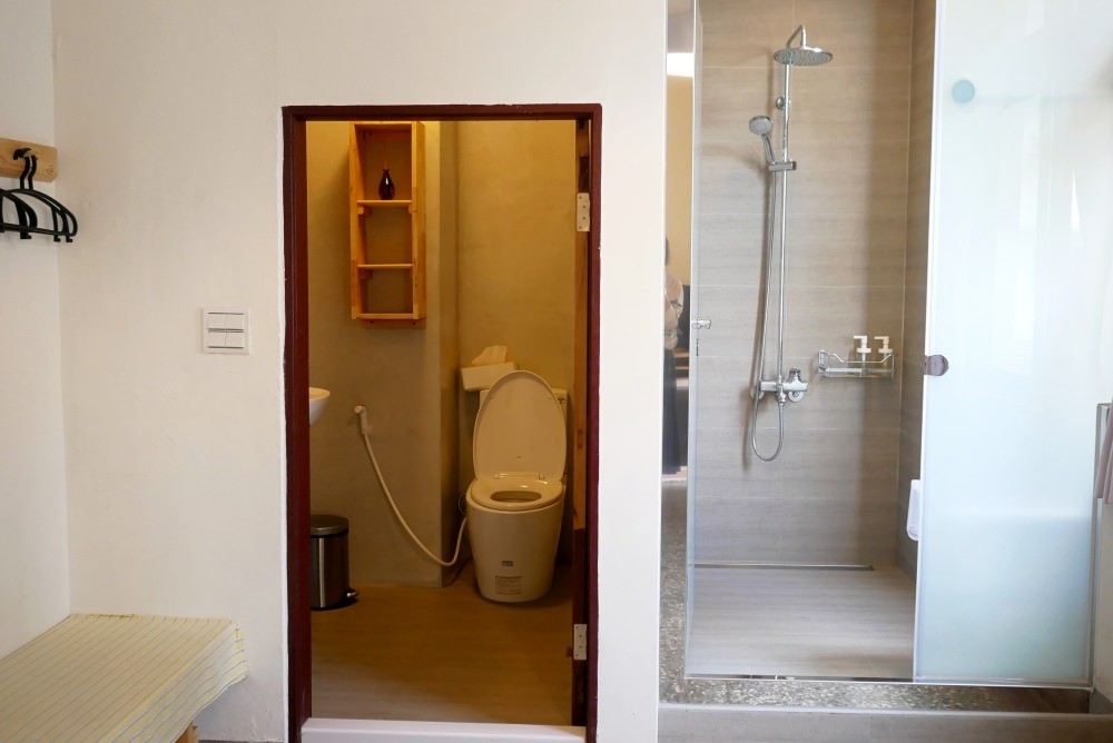 浴室也是乾濕分離,乾乾淨淨的。每一間房間的採光都很好,如果有家人、姐妹、情侶想要來新竹玩,城邊的住宿空間可以滿足不同族群的需求。