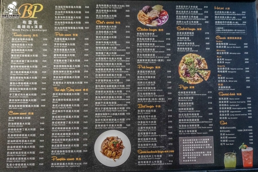 不僅有手工漢堡,還有義大利麵、炸物、調酒等美食