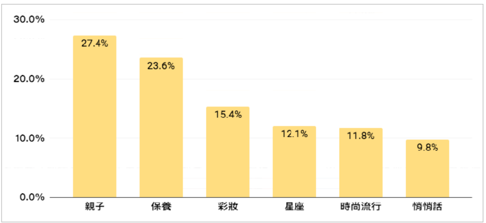 在不分齡女性觀察排名中,我們看見了親子類文章是所有熱門閱讀關鍵字排名最高的,其次為保養、彩妝,星座等。而有一個特殊的類型是悄悄話的類別,其中所包含的文章內容如出軌、婦科疾病、情慾、乾妹妹等另人害羞的文字居多。但文章主要標注分詞卻是以悄悄話進行分類,可以見得華人女性依舊是較為保守內斂,一起來多關心身邊的女性吧,時不時就讓他們傾訴一下心中的悄悄話,或許也是一種疼惜女人的表現喔。