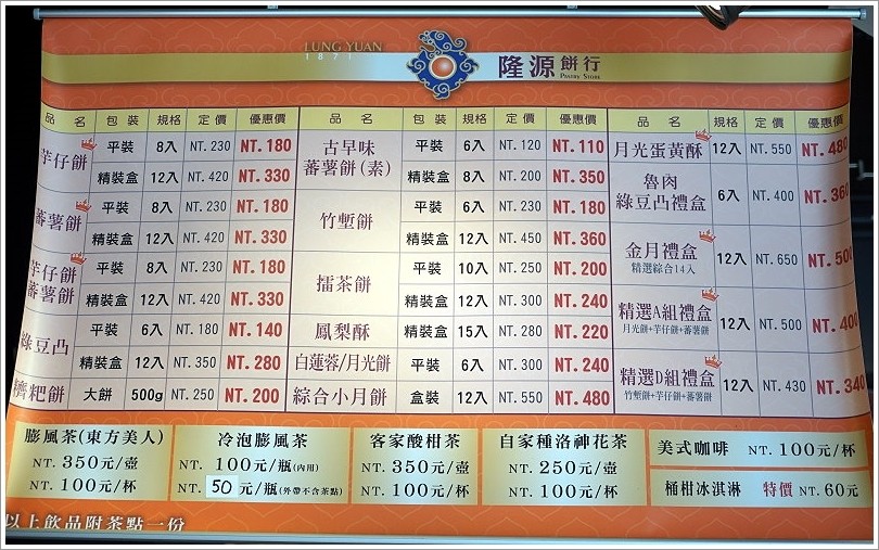 ▼販售的品項也相當多,除了招牌的芋仔餅、番薯餅之外,也有竹塹餅、擂茶餅、月光餅、櫅粑餅、茶品及多項禮盒,不僅是伴手禮的好選擇,也有不少新人採用他們家的櫅粑餅當作結婚喜餅呢!