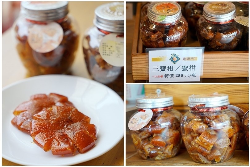 ▼此外也有最新產品蜜糖桶柑,桶柑也是在地非常盛產的農產品,為了不浪費食材、發揚光大,所以店家特別選用桶柑來做為蜜餞跟果醬使用!