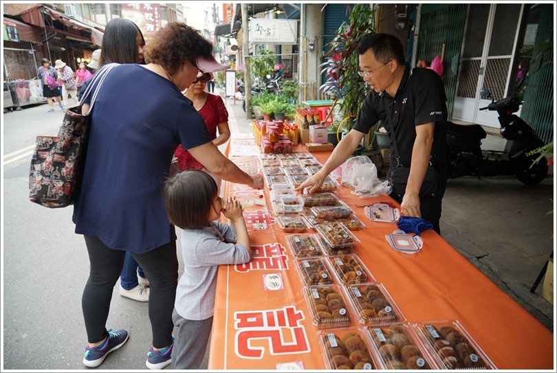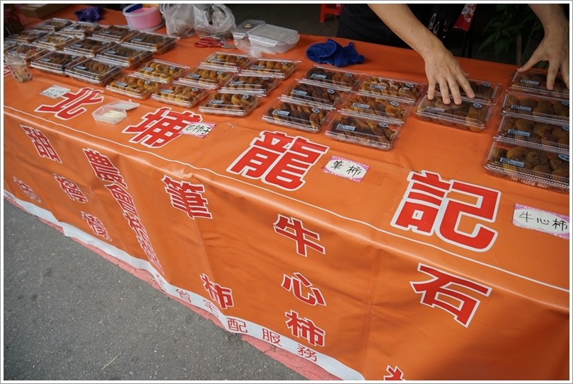 ▼來到客家庄怎麼可以不來買柿餅!但是柿餅這麼多要怎麼買、怎麼選,接著看下去就對了~在地友人帶我們來到「北埔龍記柿餅」,雖然是個小小攤子但是人氣頗旺,連日本客人也都來這裡購買呢!