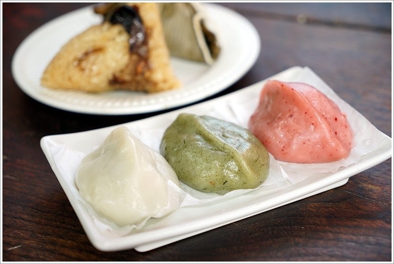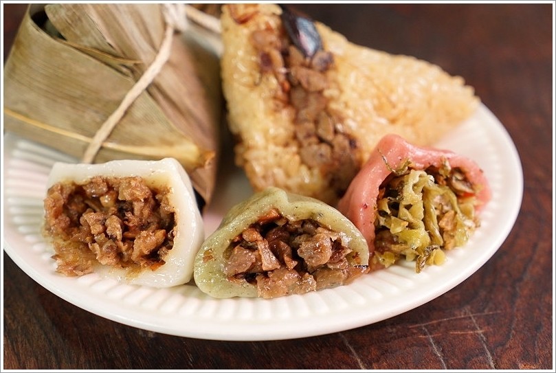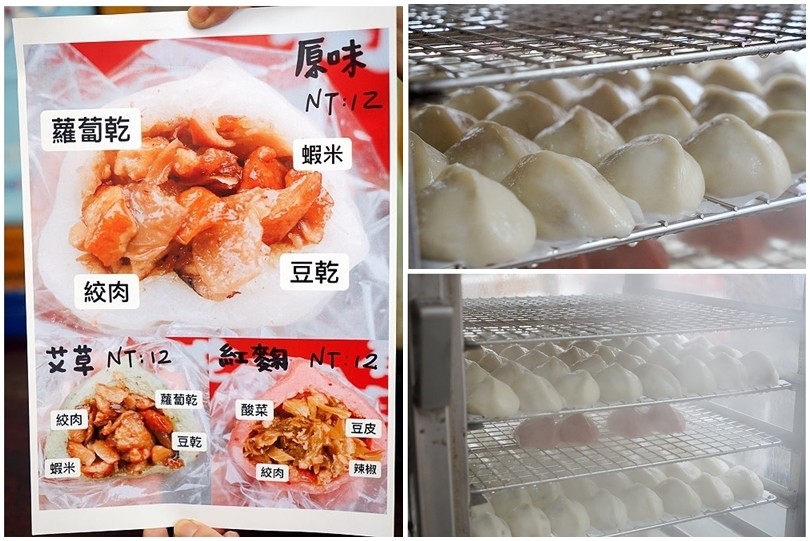 ▼原味裡頭包的是蘿蔔乾、絞肉、蝦米、豆乾;艾草裡頭也是絞肉、蘿蔔乾、蝦米、豆乾;紅麴口味則是酸菜、豆皮、絞肉、辣椒等,都可以視個人喜愛來購買!